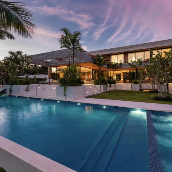 The South Venetian Way Residence exemplifies a linear retreat, where the interplay of space is beautifully accentuated by light, water, and geometry. The architectural composition features elongated horizontal volumes, deep...
