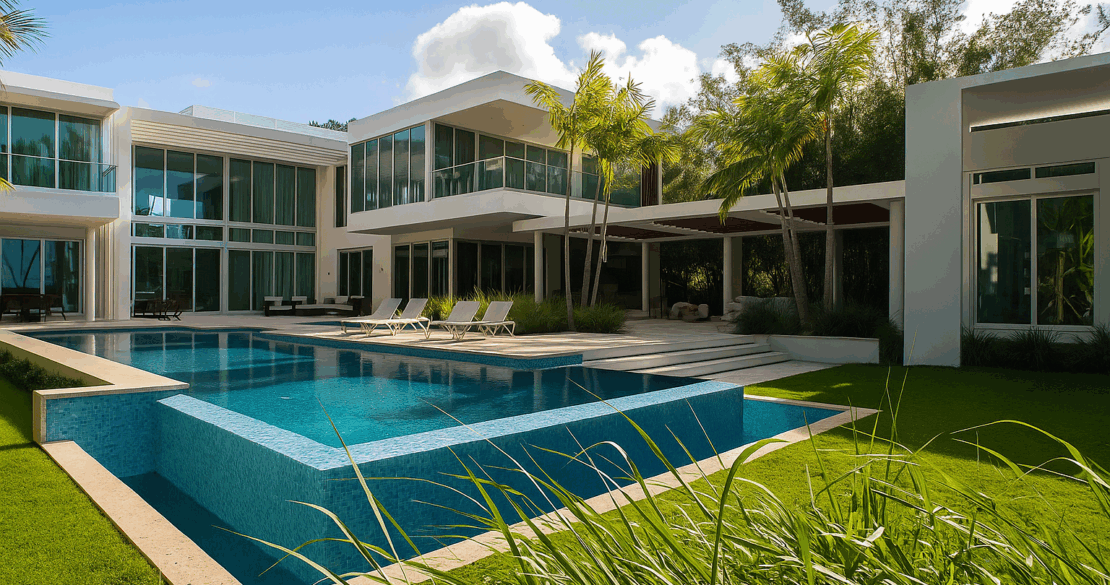 Sabal Palms is a serene residence that harmonizes architecture, light, and nature. Positioned by the water, the house features bold lines and white planes with wood details blending into the surrounding greenery and still bay.